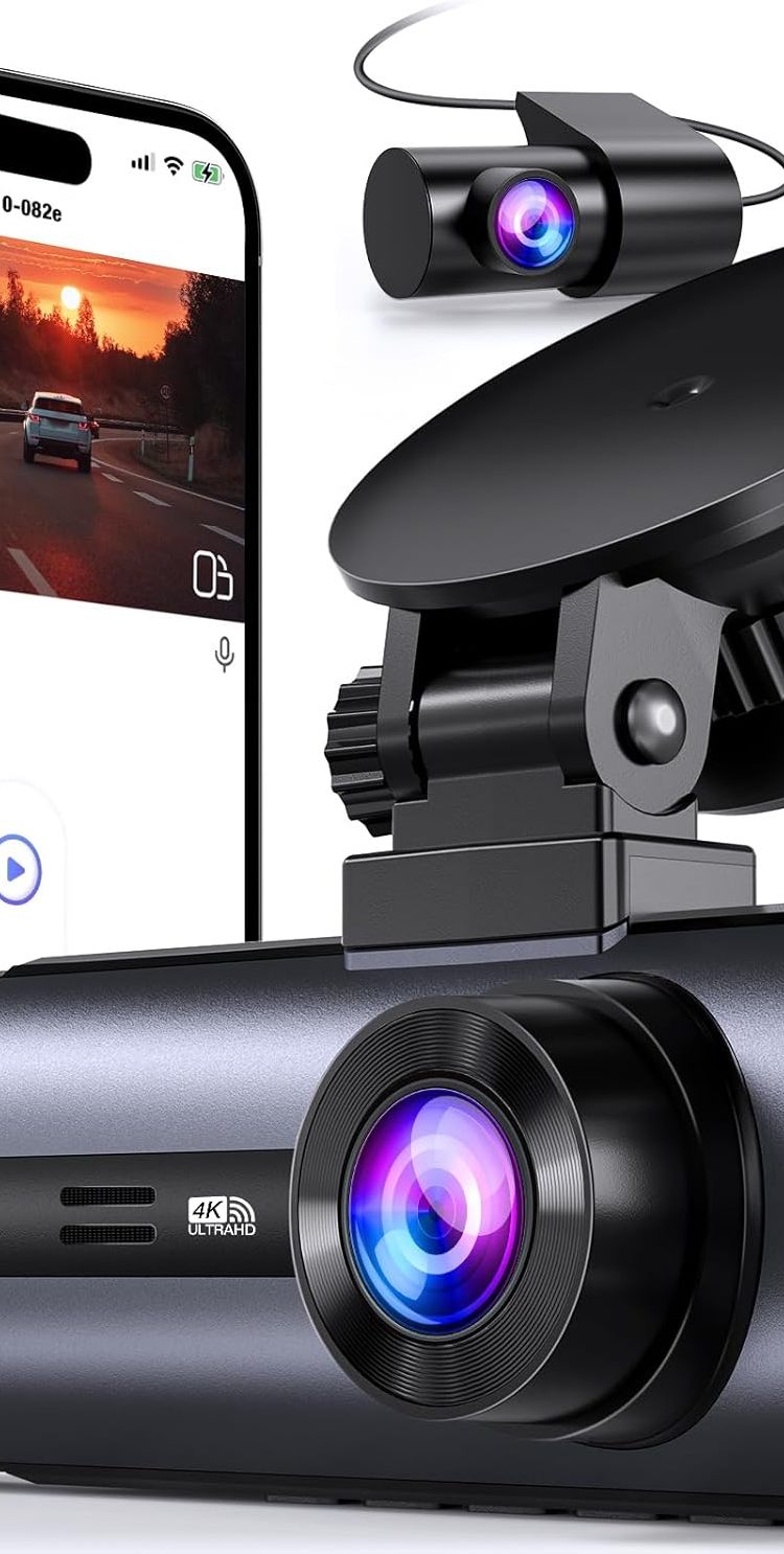 3 Channel 4K Dash Cam with 5GHz WiFi & APP Control, 4K/2.5K+1080P+1080P Front Inside and Rear, Triple Dash Camera with 64GB Card, G-Sensor, 24 Hours Parking Mode, Loop Recording, Night Vision