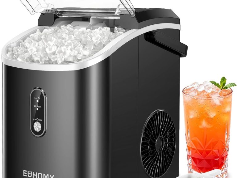 EUHOMY Nugget Ice Maker Countertop with Handle, Ready in 6 Mins, 35lbs Per Day, Removable Top Cover, Auto-Cleaning, Portable Sonic Ice Maker with Basket and Scoop, for Home/Party/RV/Camping