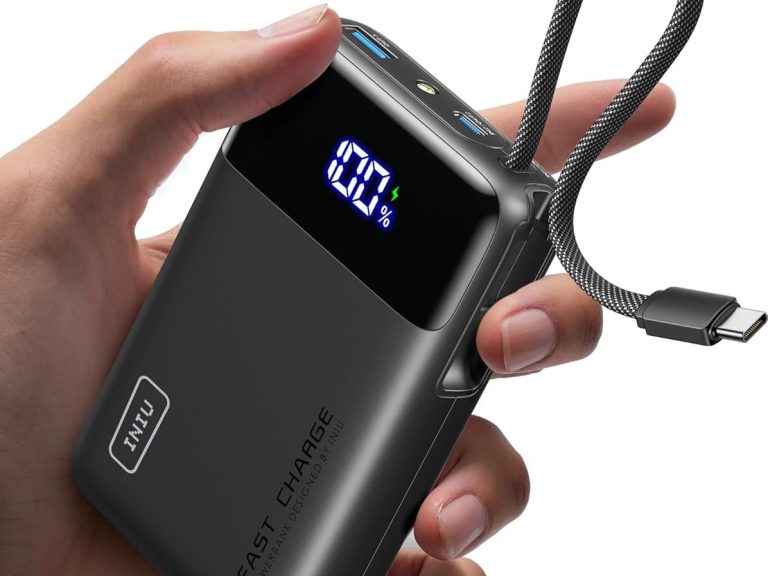 INIU 45W Portable Charger, Smallest 20000mAh Power Bank with Build in USB-C Cable, Fast Charging USB C in&Out Battery Pack, Travel Phone Charger for iPhone 17 16 15 Air Samsung S25 S24 Google iPad etc